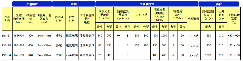 陰靈敏CathodeSensitivity at 800nm (peak) |