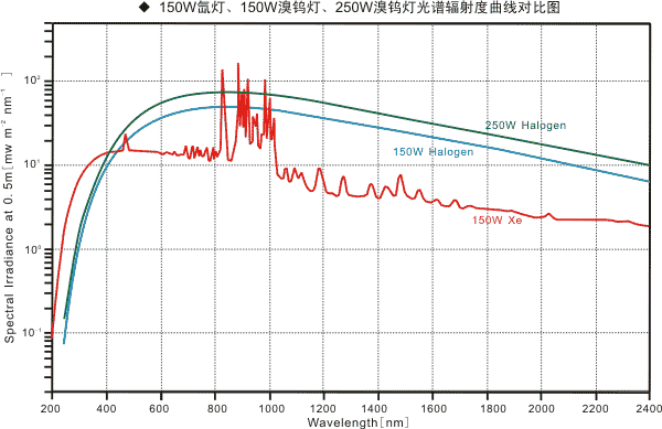 ◆ 溴鎢燈:250-2700nm(300-2500nm)