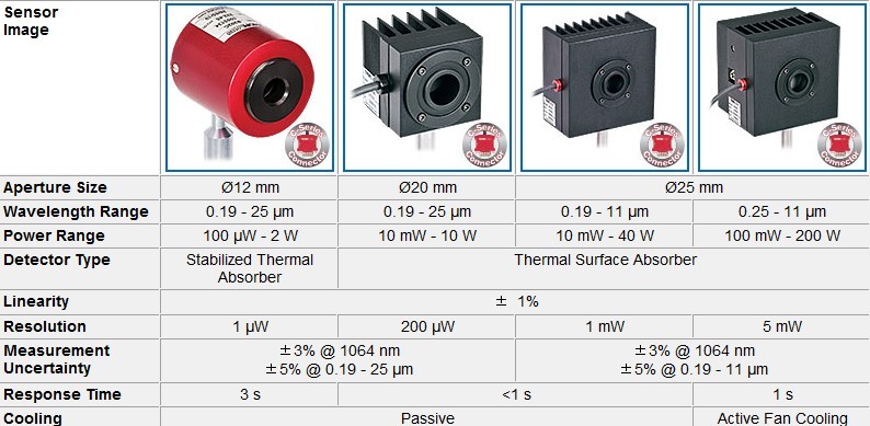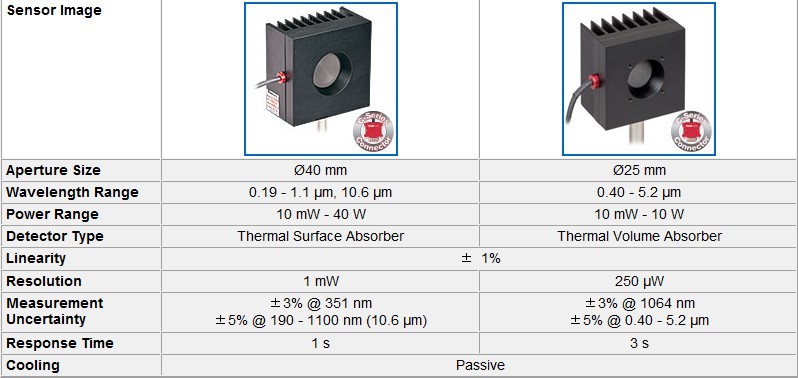 ![]() 用于準(zhǔn)分子和YAG激光器的熱敏傳感器