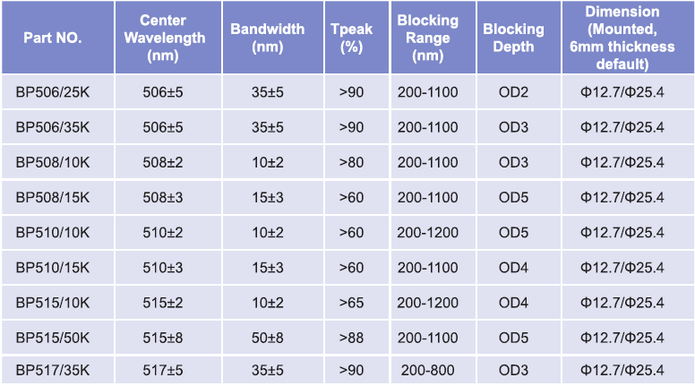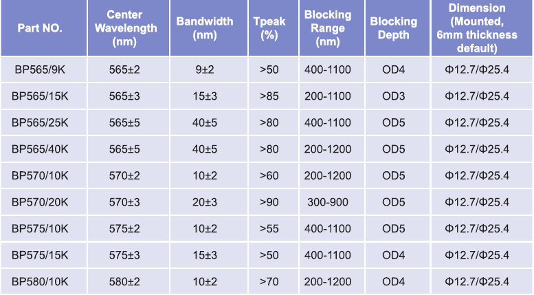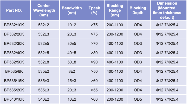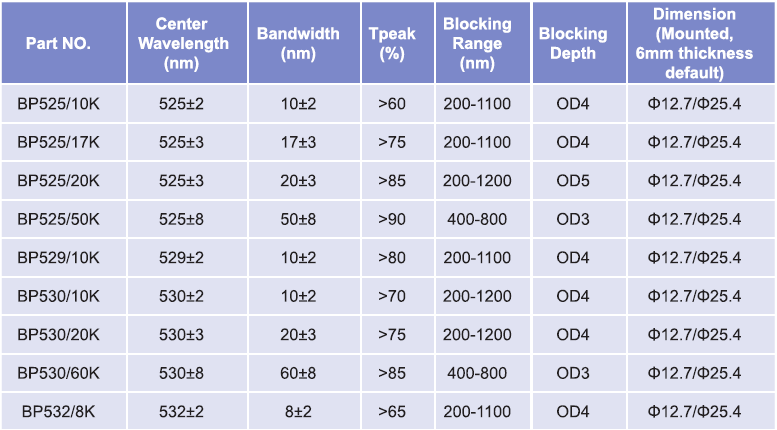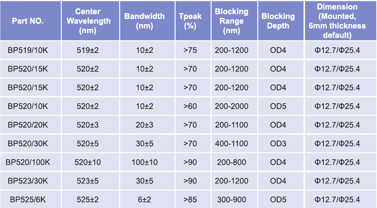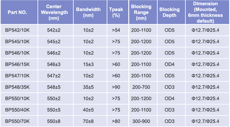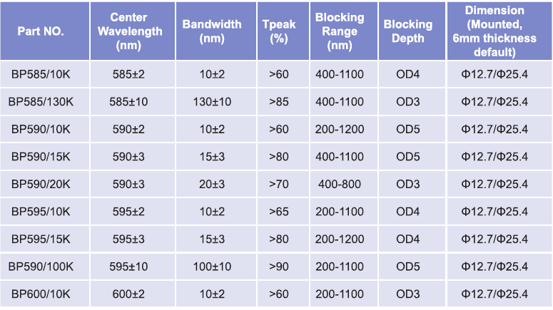4、庫存:上萬種標準及非標準帶通濾光片產(chǎn)品現(xiàn)貨供應