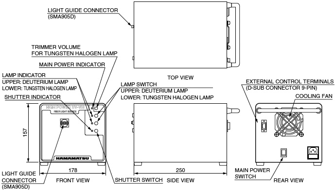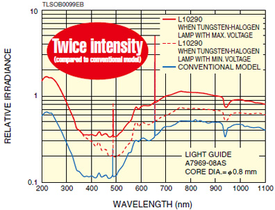 通過使用安裝在同一外殼內(nèi)的高亮度氘燈和鹵鎢燈,該光源能通過光波導(單賣)輸出200nm1600nm的光。輸出的光強大約是現(xiàn)有型號的兩倍。緊湊的尺寸和較輕的重量使其易于攜帶。機械快門和外部控制等實用的功能使其易于使用。這種新型光源同時適用于多種型號的便攜式設(shè)備。