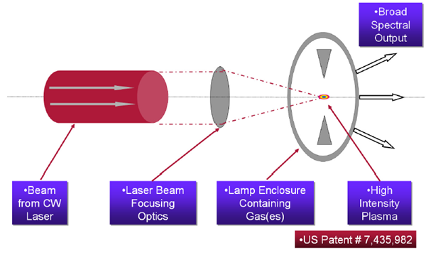 量來維持燈泡內(nèi)的等離子體,此時高壓即可關(guān)閉,采用聚焦良好的激光來維持等離子體,