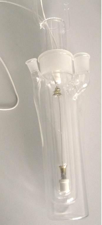 石英冷阱 型號(hào):PH225,石英玻璃材質(zhì),用于長(zhǎng)弧汞燈的冷卻,可以通除部分紅外光降低熱效應(yīng),磨口60/40,有效長(zhǎng)度225mm