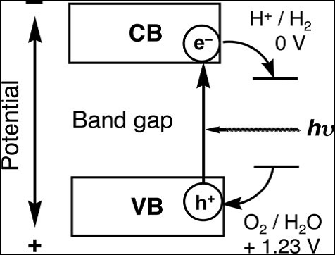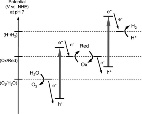 | 圖2.光分解水制氫原理示意圖[1] | 圖3.光分解水制氫的主要過程示意圖[2] |