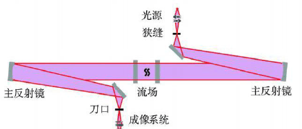 紋影儀是根據光線通過不同密度的氣流而產生的角偏轉來顯示其折射率,是一種測量光線微小偏轉角的裝置。它將流場中密度梯度的變化轉變?yōu)橛涗浧矫嫔舷鄬鈴姷淖兓箍蓧嚎s流場中的激波、壓縮波等密度變化劇烈的區(qū)域成為可觀察、可分辨的圖像。