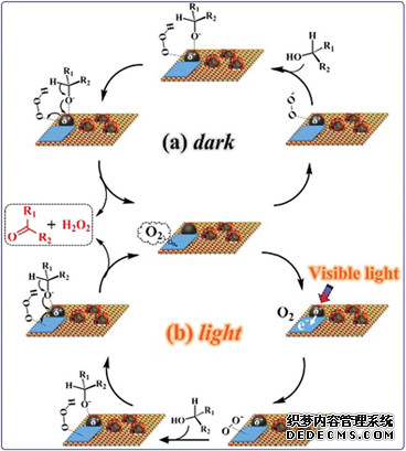 TiO2@NC-Ru-T中氮摻雜碳不僅增強(qiáng)了Ru納米顆粒的催化性能,同時(shí)通過Mott-Schottky接觸促進(jìn)了光活化Ru納米顆粒中光生電子向TiO2的輸運(yùn)。在可見光照射下,上述效應(yīng)可以大增強(qiáng)乙醇在空氣中的選擇性需氧氧化。這一研究為光催化反應(yīng)中提高可見光吸收和電荷/電子轉(zhuǎn)移提供了可行的方法,也為開發(fā)將太陽能轉(zhuǎn)化為相關(guān)化學(xué)品的能源轉(zhuǎn)換反應(yīng)催化劑指明了新的方向。