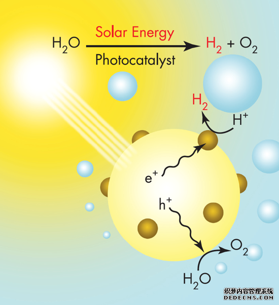 半導體TiO2及過渡金屬氧化物、層狀金屬化合物,如K4Nb6O17、K2La2TiO10、Sr2Ta2O7等,以及能利用可見光的催化材料,如CdS、Cu-ZnS等,都能在一定的光照條件下,催化分解水,從而產(chǎn)生氫氣。然而到目前為止,利用催化劑光解水的效率還很低,只有1% ~2%。已經(jīng)研究過的用于光解水的氧化還原催化體系主要有半導體體系和金屬配合物體系兩種,其中以半導體體系的研究為深入。 半導體光催化在原理上類似于光電化學池,細小的光半導體顆粒可以被看作是一個個微電懸浮在水中,他們像光陽一樣在起作用,所不同的是它們之間沒有像光電化學池那樣被隔開,甚至陰也被設(shè)想是在同一粒子上,水分解成氫氣和氧氣的反應(yīng)同時發(fā)生。當小于387nm 的紫外光照射到TiO2時,價帶上電子吸收能量后發(fā)生躍遷到導帶,在價帶和導帶分別產(chǎn)生了空穴與電子,吸附在TiO2的水分子被氧化性很強的空穴氧化成為氧氣,同時產(chǎn)生的氫離子在電解液中遷移后被電子還原成為氫氣。和光電化學池比較,半導體光催化分解水放氫的反應(yīng)大大簡化,但通過光激發(fā)在同一個半導體微粒上產(chǎn)生的電子空穴對易復合。因此為了抑制氫和氧的逆反應(yīng)及光激發(fā)半導體產(chǎn)生的電子和空穴的再結(jié)合,可加入電子給體作為空穴清除劑,以提高放氫效率。廢水中許多有機物是良好的電子給體,如果把廢水處理與光催化制氫結(jié)合起來,可同時實現(xiàn)太陽能制氫和太陽能去污 。