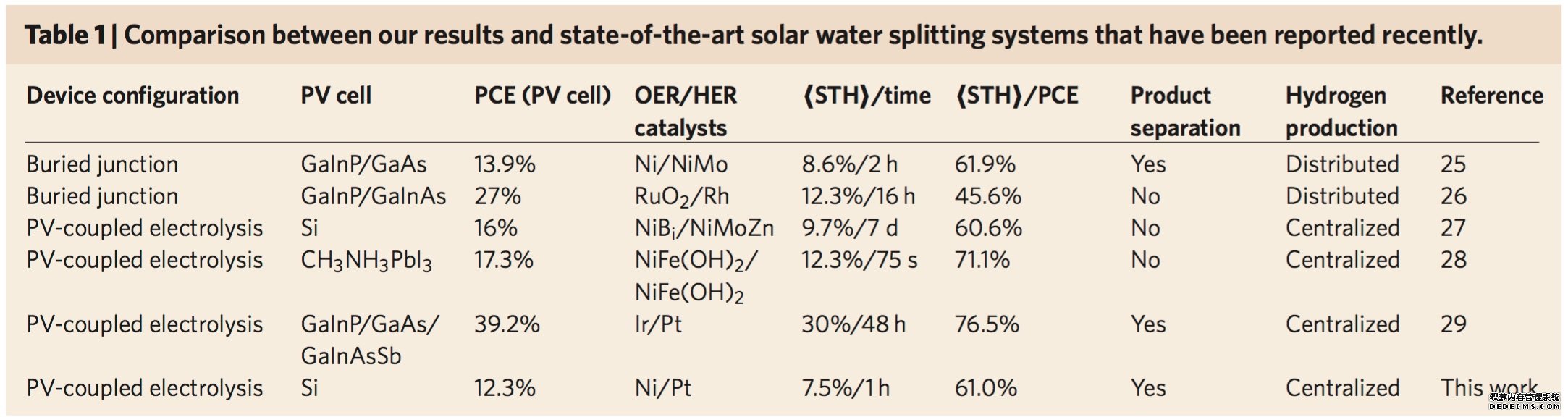 太陽能產(chǎn)氫一直是人類孜孜追求的目標。但如何實現(xiàn)大規(guī)模持續(xù)、廉價產(chǎn)氫是為棘手又亟待解決的問題。在傳統(tǒng)電解槽結構中,產(chǎn)氫和產(chǎn)氧在同一槽中。但這一方式在光電產(chǎn)氫領域受到了大的限制。如何整合太陽能的轉化與電解水產(chǎn)氫成為關鍵。本文中,作者通過分離產(chǎn)氫、產(chǎn)氧過程,并利用輔助電作為“調節(jié)劑”,成功實現(xiàn)大面積太陽能轉化與集中式產(chǎn)氫,太陽能產(chǎn)氫轉換效率達到7.5 %。同時,較之傳統(tǒng)光電化學體系,該方法在成本、安全性以及穩(wěn)定性上都具有一定的競爭優(yōu)勢。